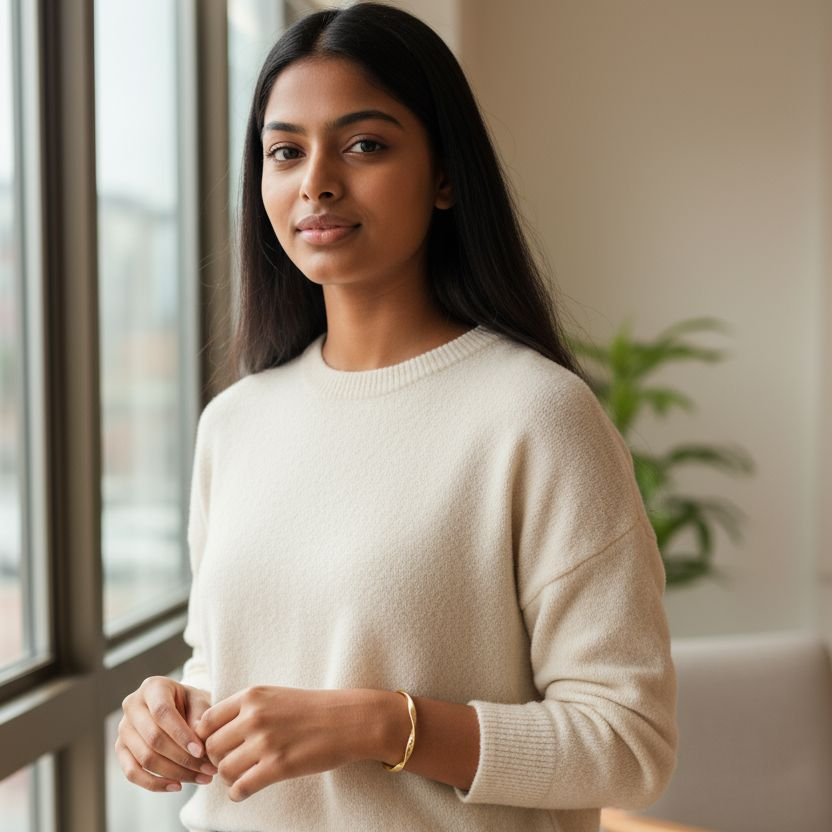 This bracelet features a minimalist, twisted design with textured gold and silver, that blend modernity and elegance. Expertly crafted, it enhances any look with subtle sophistication, making it a versatile addition to both casual and formal wardrobes.