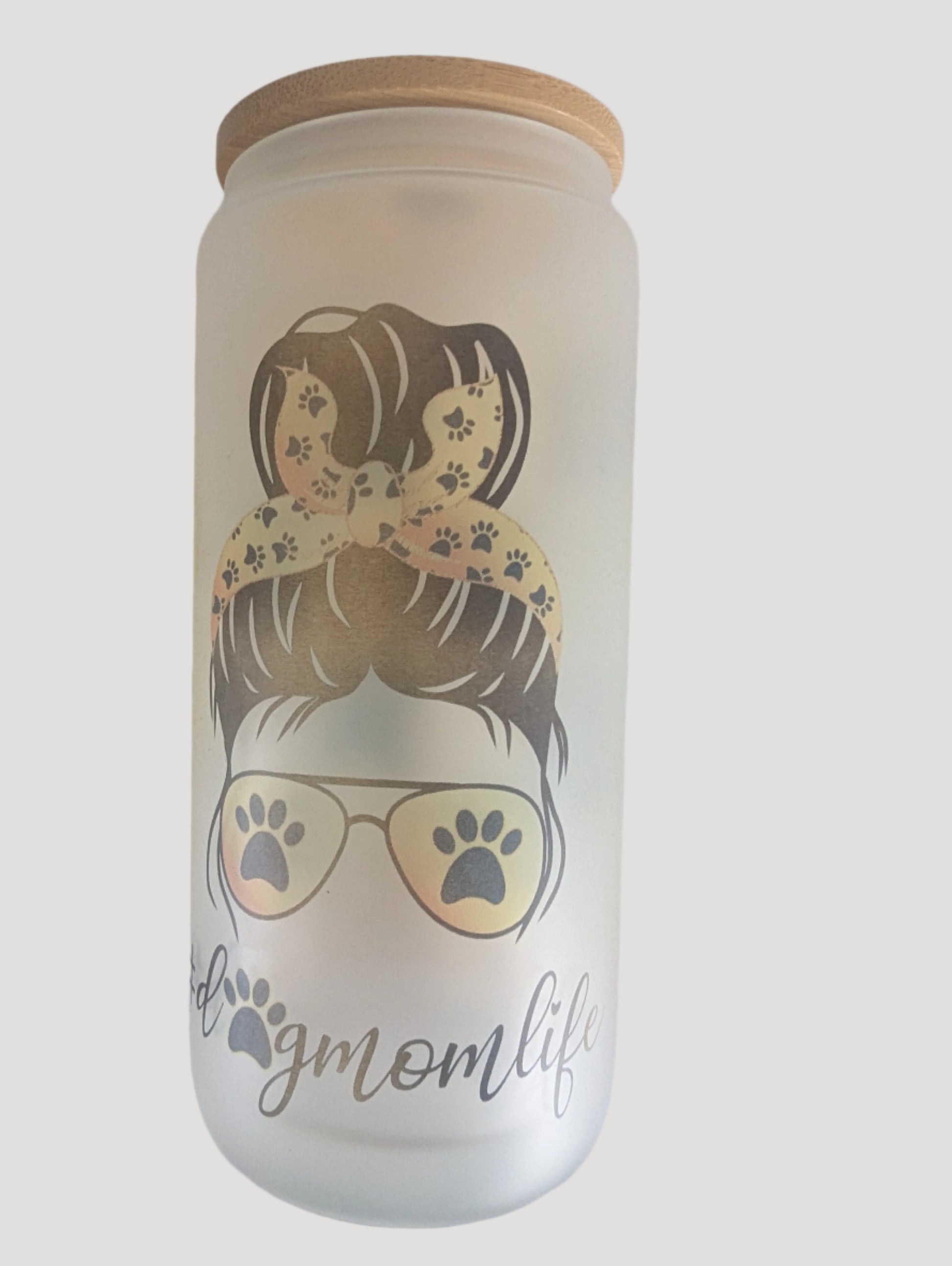 This 20oz glass tumbler features a frosted can design, combining style with practicality.